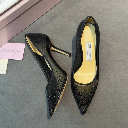 Черные женские туфли Jimmy Choo из сетки со стелькой из натуральной кожи. Туфли станут характерной деталью вашего индивидуального стиля и точкой притяжения внимания. Дизайнеры подчеркнули модель тонким каблуком, который эффектно контрастирует с узкой заостренной носочной частью. В нашем интернет-магазине вы можете купить копии туфель с доставкой по Москве и по всей России.