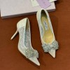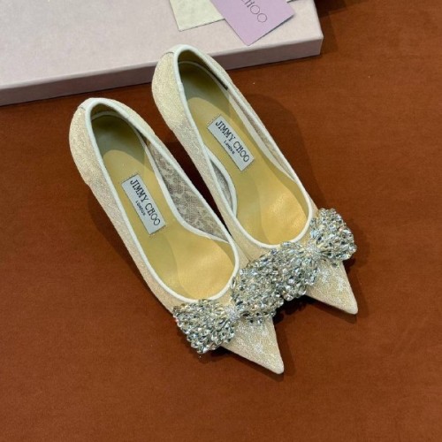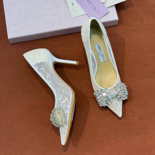 Белые женские туфли Jimmy Choo из сетки со стелькой из натуральной кожи. Классический силуэт на каблуке преображается благодаря полупрозрачной сетке и яркому банту из страз в виде декора. Острая носочная часть и глубокий вырез делают туфли идеальным дополнением для вечерних и деловых образов. В нашем интернет-магазине вы можете купить копии туфель с доставкой по Москве и по всей России.