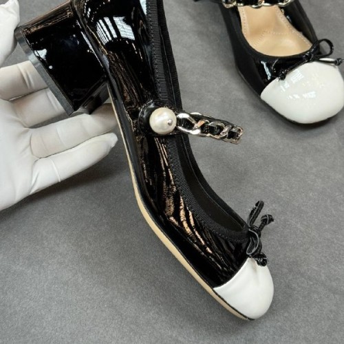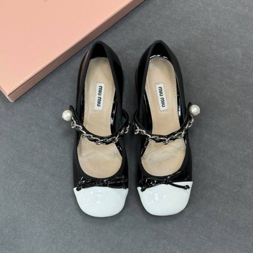 Черные туфли Miu Miu с белым носом из лакированной кожи. Модный дизайн превращает универсальные черные туфли в акцентную модель. Форма продумана таким образом, чтобы надежно фиксировать стопу, а устойчивый каблук, высотой 3,5 см придает дополнительную устойчивость. В нашем интернет-магазине вы можете купить копии туфель с доставкой по Москве и по всей России.