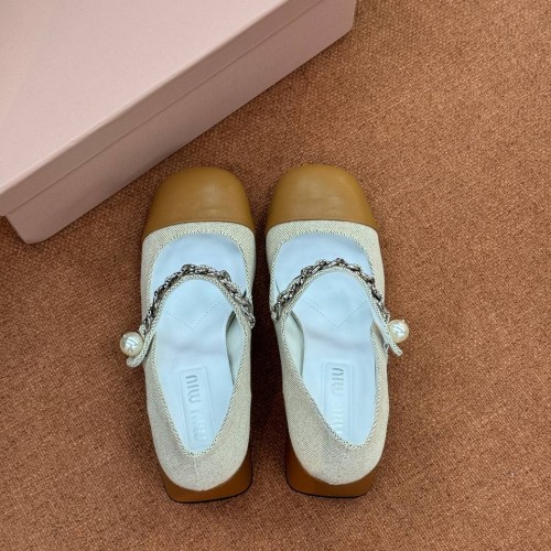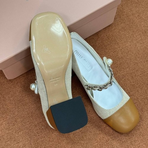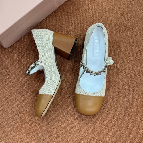 Бежевые туфли Miu Miu с коричневым носом из ткани и натуральной кожи. Стильная пара на устойчивом каблуке, высотой 6,5 см внесет завершающий штрих в ваш образ. Удобная колодка позволяет с легкостью провести весь день на ногах. В нашем интернет-магазине вы можете купить копии туфель с доставкой по Москве и по всей России.