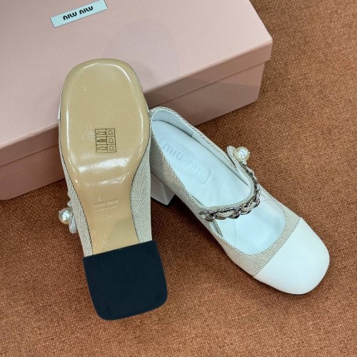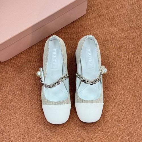 Бежевые туфли Miu Miu с белым носом из ткани и натуральной кожи. Дизайнерская обувь сделает любой образ притягательным и стильным. Минималистичное дизайнерское решение в сочетании с небольшим каблуком, высотой 6,5 см позволяет найти баланс между расслабленностью и строгостью. В нашем интернет-магазине вы можете купить копии туфель с доставкой по Москве и по всей России.