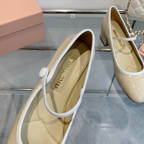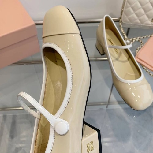 Бежевые туфли Miu Miu из лакированной кожи. Стильная пара на устойчивом каблуке подчеркнет стройность женского силуэта. За счет округлой отрезной носочной части и фиксирующего ремешка вы будете чувствовать комфорт в течение всего дня. В нашем интернет-магазине вы можете купить копии туфель с доставкой по Москве и по всей России.