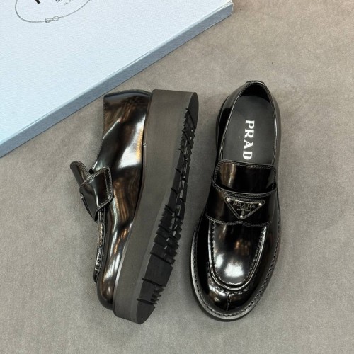 Стильные черные лоферы Prada из лакированной кожи. Сочетание стиля и актуального дизайна - лоферы станут элегантным дополнением к деловому стилю или вечернему наряду. Удобная подошва, высотой 4,5 см гарантируют легкую походку и максимальный комфорт. В нашем интернет-магазине вы можете купить копии лоферов с доставкой по Москве и по всей России.