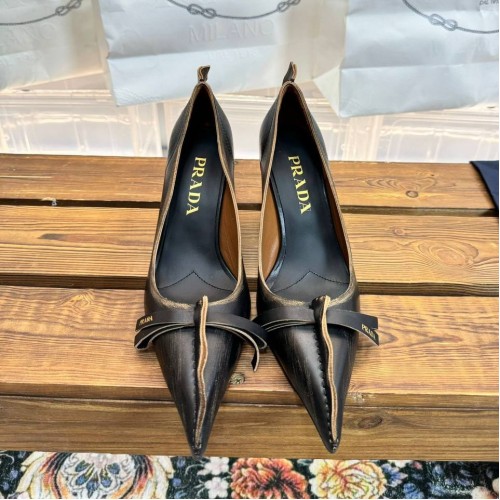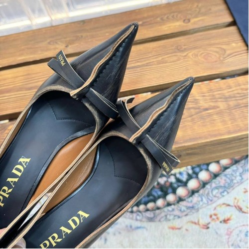 Черные женские туфли Prada из натуральной кожи. Воплощение современной чувственности. Глубокий вырез и вытянутая форма носочной части подчеркивают изящную линию стопы. Мягкая кожа отражает свет деликатным блеском, а скульптурный каблук добавляет образу непринужденной грации. В нашем интернет-магазине вы можете купить копии туфель с доставкой по Москве и по всей России.