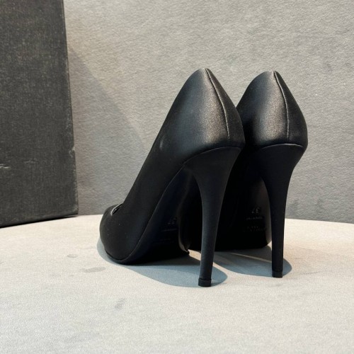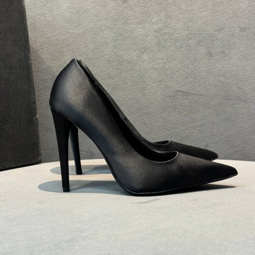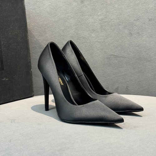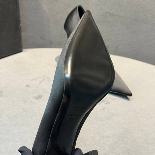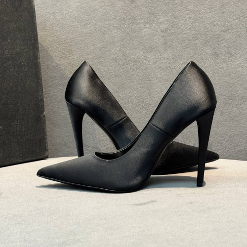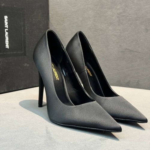 Женские черные туфли Saint Laurent из атласа. Элегантная пара на устойчивом каблуке шпильке, высотой 10 см внесет завершающий штрих в ваш неповторимый образ. Заостренная носочная часть не только усиливает актуальность модели, но и придает ей еще большей оригинальности. В нашем интернет-магазине вы можете купить копии туфель с доставкой по Москве и по всей России.