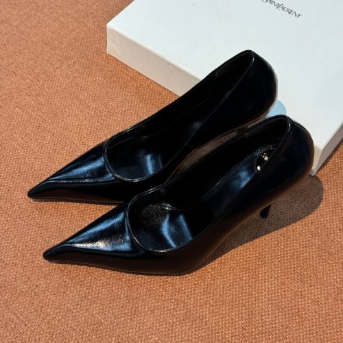 Женские черные туфли Saint Laurent из натуральной кожи. Элегантная пара на устойчивом каблуке шпильке, высотой 10 см внесет завершающий штрих в ваш неповторимый образ. Глубокий вырез и вытянутая форма носочной части подчеркивают изящную линию стопы. В нашем интернет-магазине вы можете купить копии туфель с доставкой по Москве и по всей России.