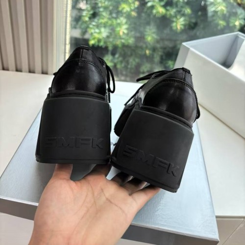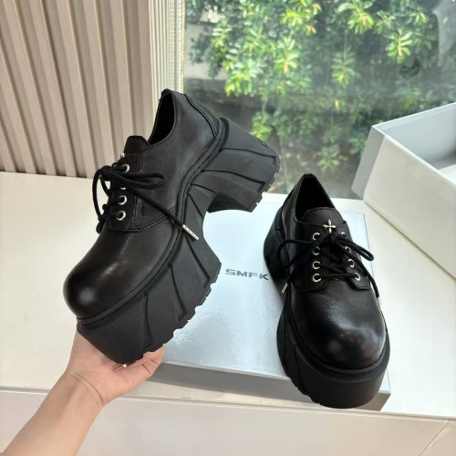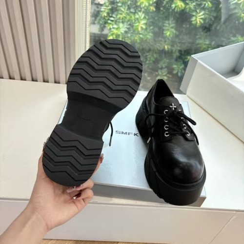Черные туфли SMFK из натуральной кожи. Стильный дизайн и черный цвет натуральной кожи делают модель универсальным и одновременно с этим запоминающимся дополнением для ваших образов. Удобная шнуровка идеально фиксирует пару на ноге. В нашем интернет-магазине вы можете купить копии туфель с доставкой по Москве и по всей России.