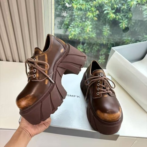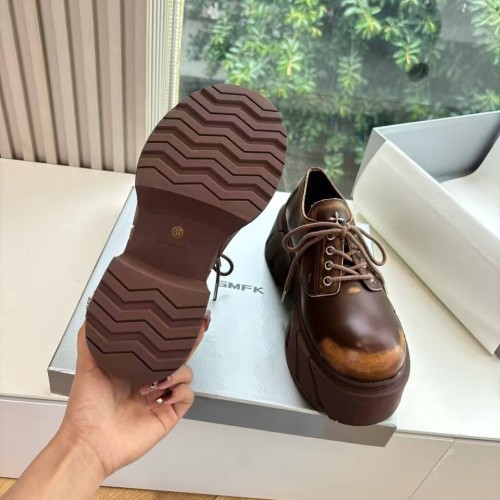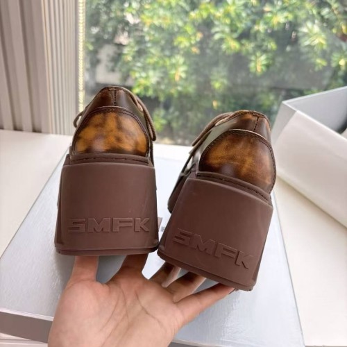 Коричневые туфли SMFK из натуральной кожи. Туфли из новой коллекции как идеальный компромисс между эпатажным стилем и ярким характером. Все внимание падает на фактуру кожи. Благодаря выверенной форме модель легко впишется как в деловые, так и в уличные образы. В нашем интернет-магазине вы можете купить копии туфель с доставкой по Москве и по всей России.