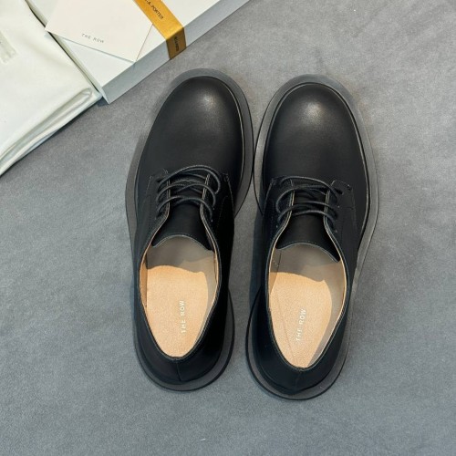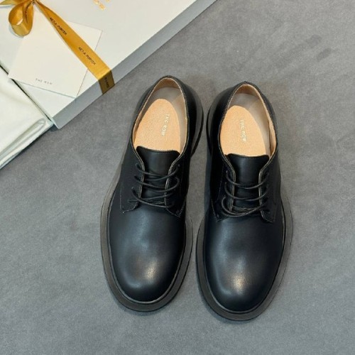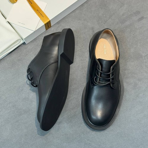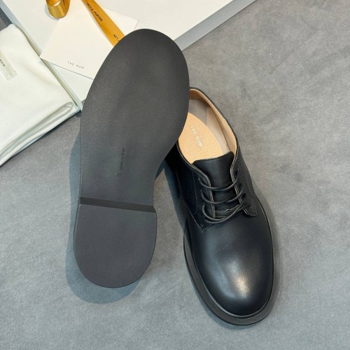 Черные женские туфли The Row из натуральной кожи. Сочетание стиля и актуального дизайна - туфли станут элегантным дополнением к деловому стилю. Удобная колодка гарантируют легкую походку и максимальный комфорт. В нашем интернет-магазине вы можете купить копии туфель с доставкой по Москве и по всей России.