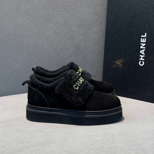 Черные укороченные угги Chanel из натуральной замши и овчины. Зимние угги - комфорт и легкая походка даже в самые насыщенные дни. Внутри и для отделки модель дополнена натуральным мягким мехом в тон - материал надежно сохраняет тепло и обеспечивает комфорт. В нашем интернет-магазине вы можете купить копии угг с доставкой по Москве и по всей России.