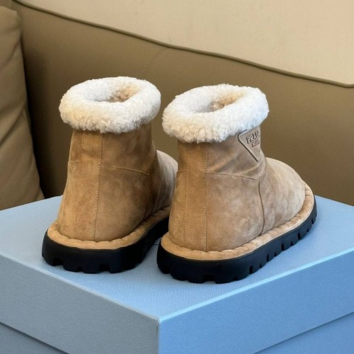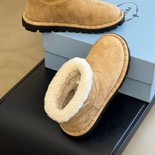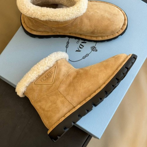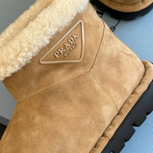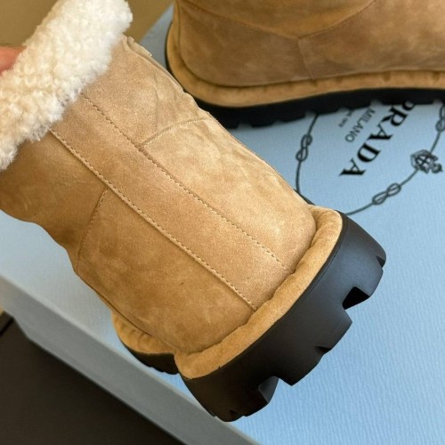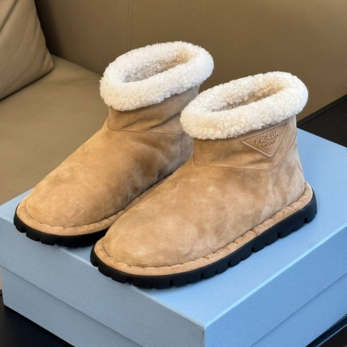 Бежевые угги Prada из мягкой натуральной замши и меха. Максимально комфортные зимние угги не только позволят вам собирать расслабленные городские образы, но и надежно защитят в зимние холода. Модель дополнена высокой облегченной подошвой и натуральным мехом. В нашем интернет-магазине вы можете купить копии угг с доставкой по Москве и по всей России.