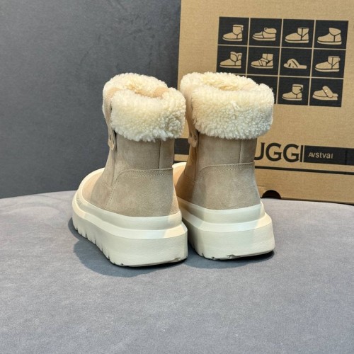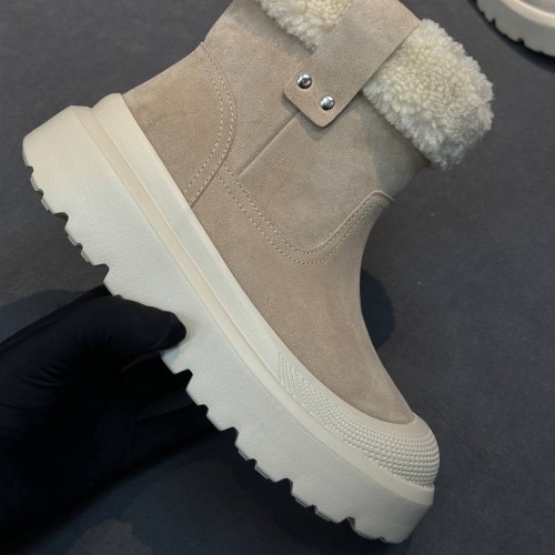 Бежевые угги UGG из натуральной замши и теплой овчины. Внутри пара дополнена натуральным мехом, обеспечивающим надежную защиту от морозов. Меховая стелька и облегченная подошва гарантируют комфорт и легкую походку в течение насыщенного дня. В нашем интернет-магазине вы можете купить копии угг с доставкой по Москве и по всей России.
