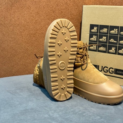 Бежевые угги UGG из натуральной замши, ткани и теплой овчины. В новой коллекции дизайнеры создали модель в лаконичном дизайне - благодаря отсутствию лишних деталей и нежному цвету она подойдет для любых зимних сочетаний. Внутри пара дополнена натуральным мехом, обеспечивающим надежную защиту от морозов. В нашем интернет-магазине вы можете купить копии угг с доставкой по Москве и по всей России.
