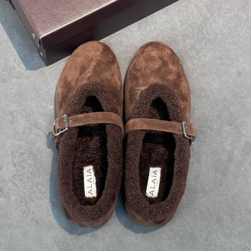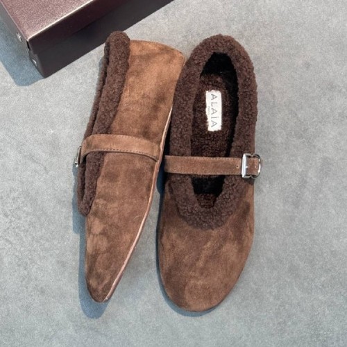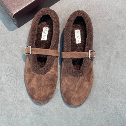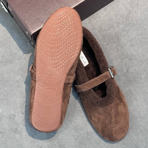 Коричневые женские балетки Alaia из натуральной замши и натурального меха. Стильное решение для холодного сезона, которое добавит непринужденности любому образу. Стелька и подкладка из натурального меха обеспечат тепло и комфорт, а легкая подошва будет устойчива к скольжению. В нашем интернет-магазине вы можете купить копии балеток с доставкой по Москве и по всей России.