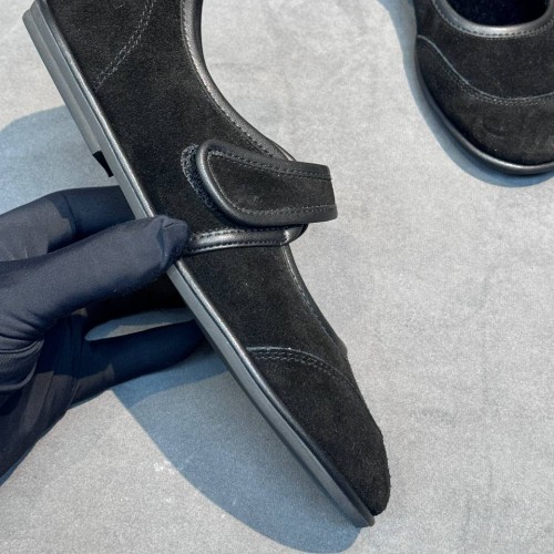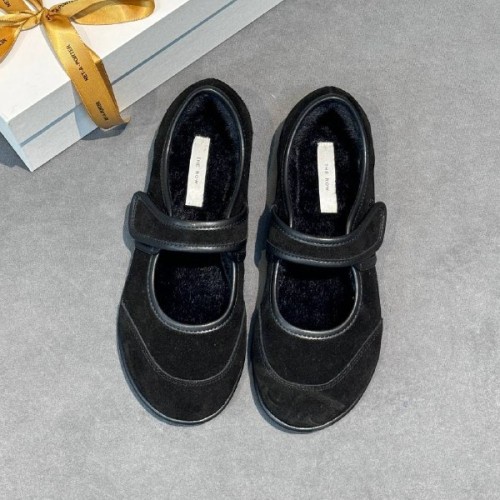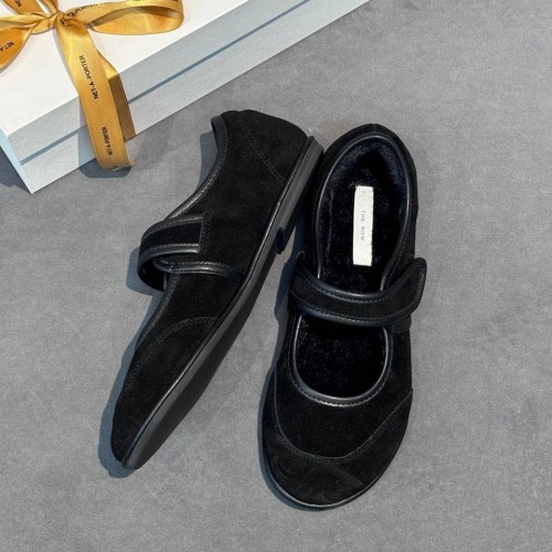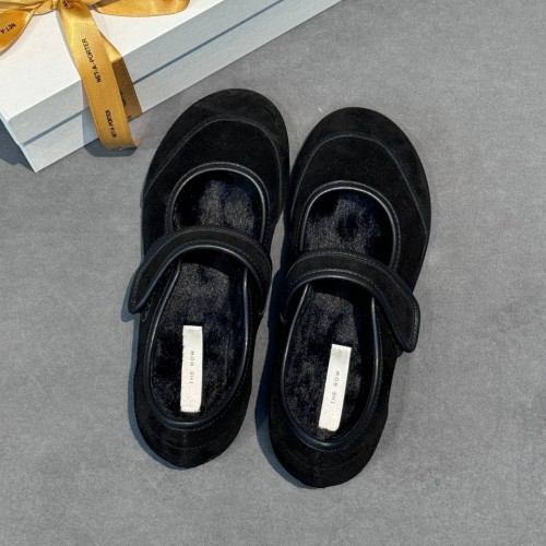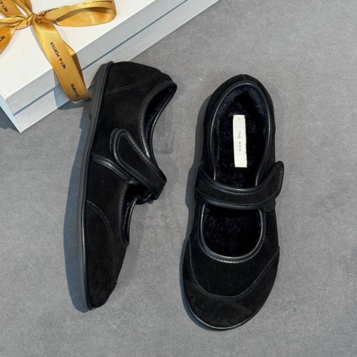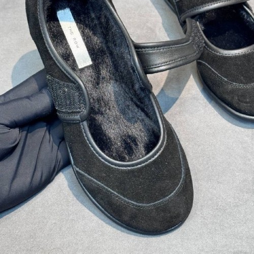 Черные женские балетки The Row из натуральной замши и натурального меха. Для тех, кто ценит лаконичность и практичность. Силуэт балеток дополнили округлым носком и ремешками с пряжками, создав интересный асимметричный акцент. В нашем интернет-магазине вы можете купить копии балеток с доставкой по Москве и по всей России.