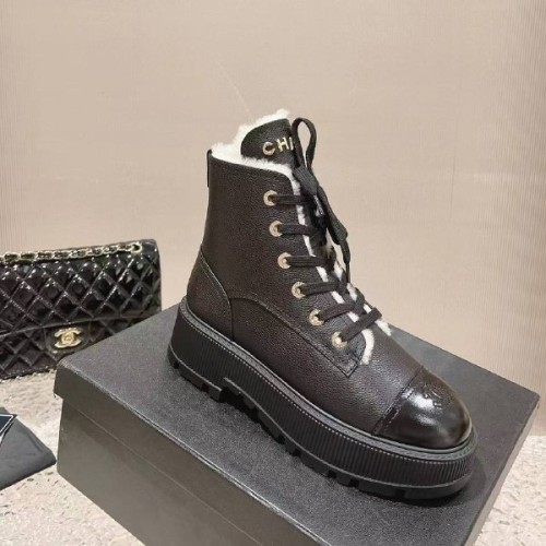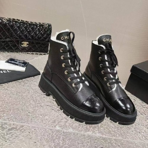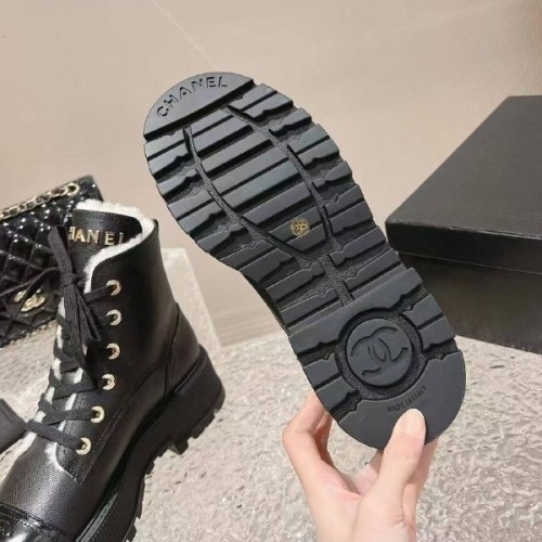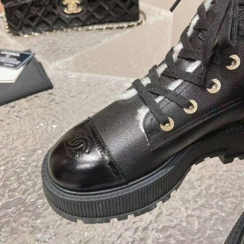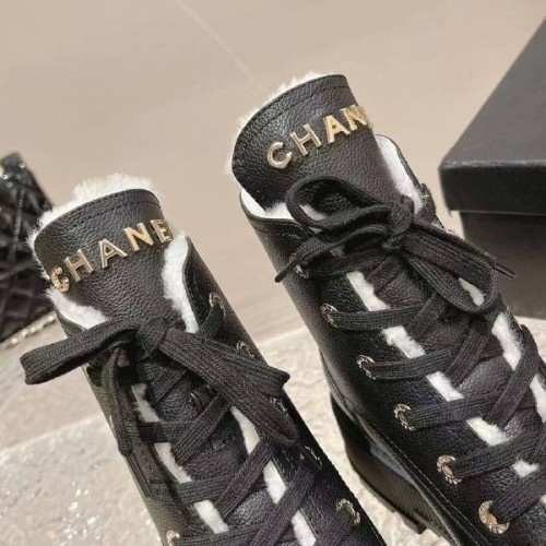 Черные ботинки Chanel из натуральной кожи. Мягкая кожа, лаконичный черный цвет и геометричный силуэт образуют идеальную модель для стильных городских будней. Подкладка и стелька из натурального меха защищают от холода. В нашем интернет-магазине вы можете купить копии ботинок с доставкой по Москве и по всей России.
