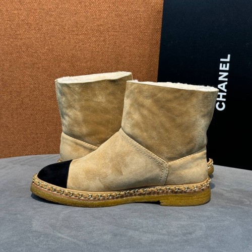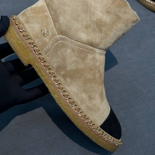 Бежевые ботинки Chanel с черным носом из натуральной замши и натурального меха. Эта модель легко станет ключевой деталью даже самого лаконичного образа, добавив индивидуальности. Декор в виде цепочки придает паре нетривиальное прочтение и особую выразительность. В нашем интернет-магазине вы можете купить копии ботинок с доставкой по Москве и по всей России.