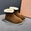 Бежевые женские ботинки Miu miu из натуральной замши и меха. В паре круглая носочная часть встречается с прямым широким голенищем, которое дополнено натуральным мехом. Выразительный дизайн поможет легко вписать обувь в повседневный гардероб, а подкладка и стелька из меха - сохранить тепло. В нашем интернет-магазине вы можете купить копии ботинок с доставкой по Москве и по всей России.