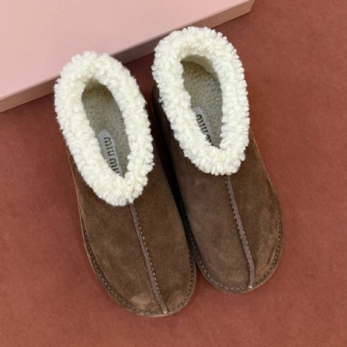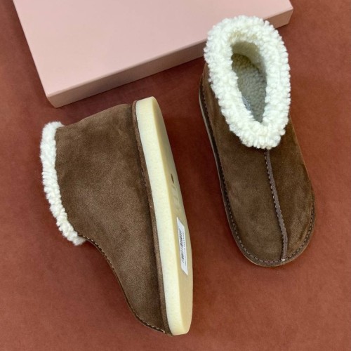 Коричневые женские ботинки Miu Miu из натуральной замши и натурального меха. Базовая модель для создания зимних сочетаний. Пара на плоском ходу представлена без фурнитуры и лишних деталей в мягком силуэте. В нашем интернет-магазине вы можете купить копии ботинок с доставкой по Москве и по всей России.