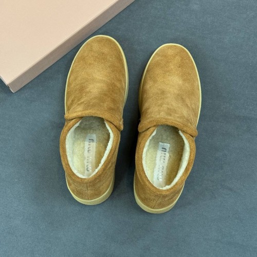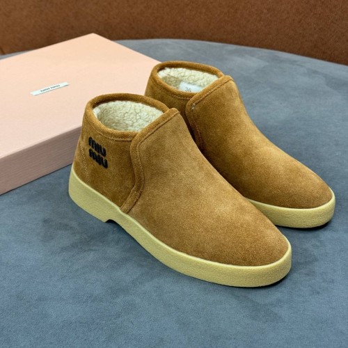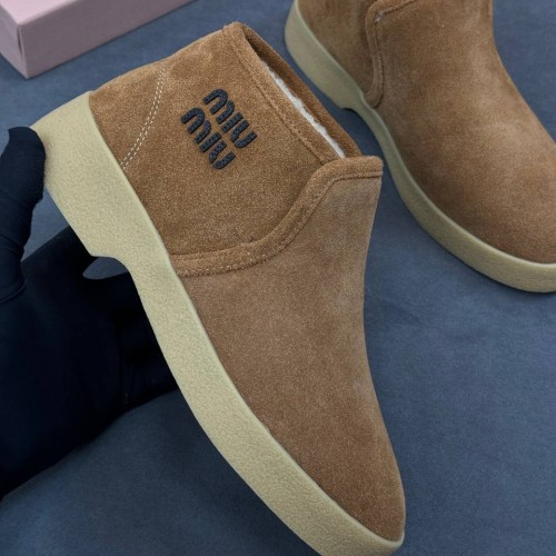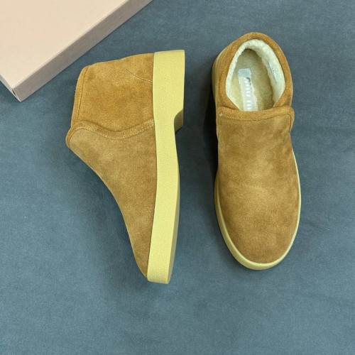 Зимние женские ботинки Miu Miu коричневого оттенка из натуральной замши и меха. Теплые ботинки - одна из базовых моделей в любом гардеробе. Дизайнеры сделали модель функциональной за счет натурального меха, а также облегченной подошвы, которая защищает от скольжения. В нашем интернет-магазине вы можете купить копии ботинок с доставкой по Москве и по всей России.