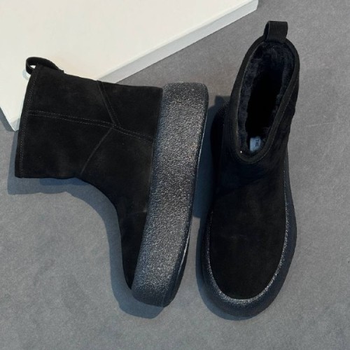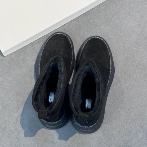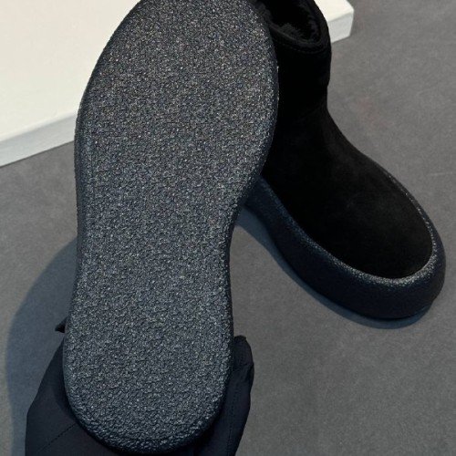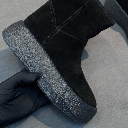 Черные женские ботинки The Row из натуральной замши и натурального меха. Стиль ретро возвращается в новой зимней коллекции модного Дома. Модная платформа обеспечивает надежное сцепление с поверхностью, предотвращая скольжение. В нашем интернет-магазине вы можете купить копии ботинок с доставкой по Москве и по всей России.