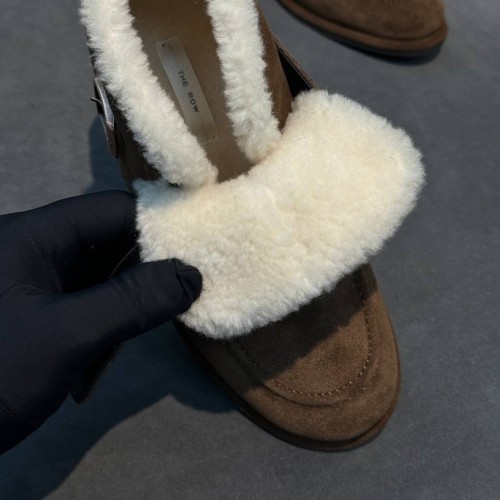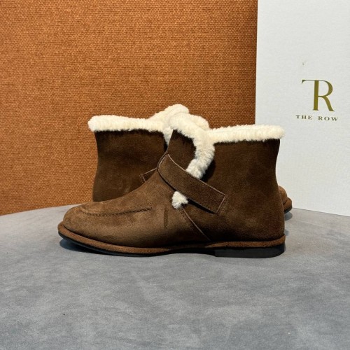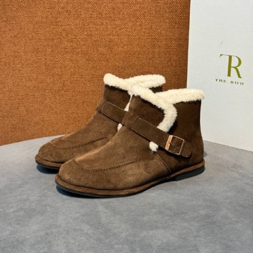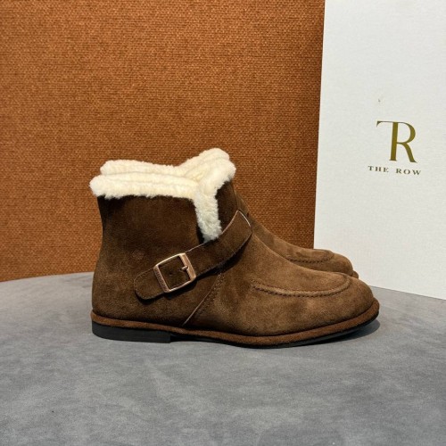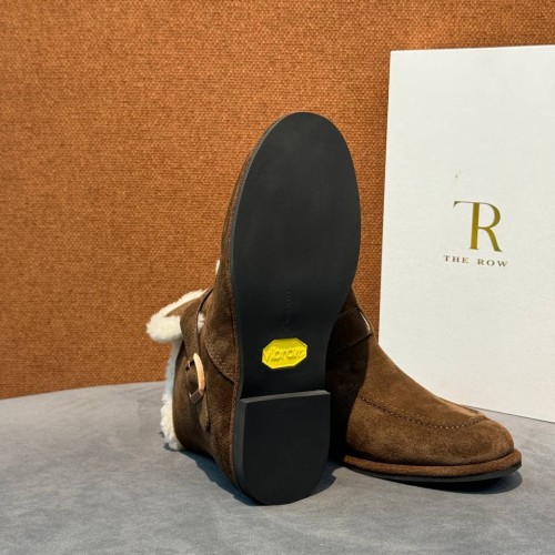 Коричневые женские ботинки The Row из натуральной замши и натурального меха. Ботинки, созданные с особым вниманием к деталям и конструкции. Дизайнеры подчеркнули модель белым мехом и стильным ремешком-застежкой. В нашем интернет-магазине вы можете купить копии ботинок с доставкой по Москве и по всей России.