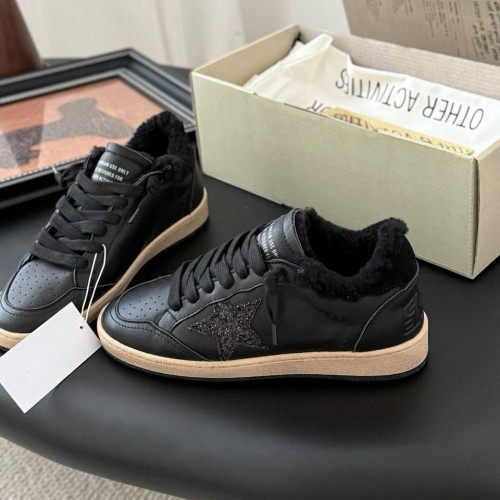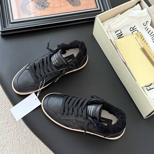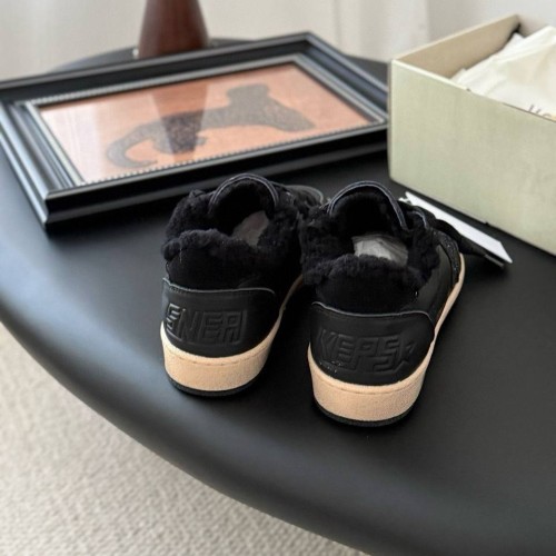 Черные зимние женские кеды Golden Goose из натуральной замши утеплены натуральным мехом. Удобная шнуровка надежно фиксирует изделие на ноге и отвечает за идеальную посадку. Облегченная подошва делает кеды легкими и при этом защищает от скольжения. В нашем интернет-магазине вы можете купить копии кед с доставкой по Москве и по всей России.