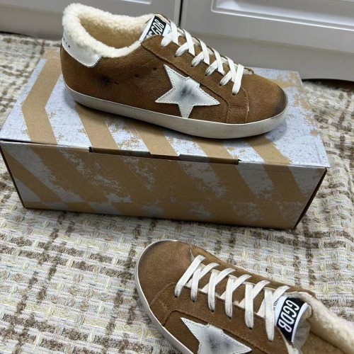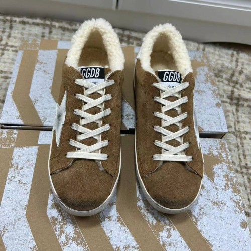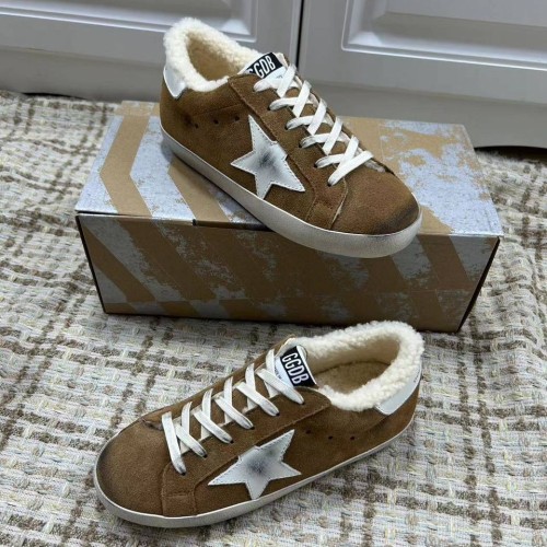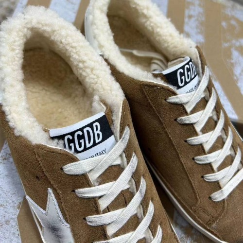 Коричневые зимние женские кеды Golden Goose из натуральной замши утеплены натуральным мехом. Идеальная пара для динамичной повседневности. Рельефная подошва предотвращает скольжение, а универсальный светло-коричневый цвет и минималистичный дизайн позволяют легко сочетать пару с любыми повседневными образами. В нашем интернет-магазине вы можете купить копии кед с доставкой по Москве и по всей России.