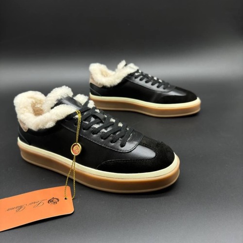 Черные зимние кеды Loro Piana из натуральной кожи и натурального меха. Зимние кеды - стильное решение для холодного сезона, которое добавит непринужденности любому образу. Стелька и подкладка из натурального меха обеспечат тепло и комфорт, а легкая подошва с рельефным рисунком будет устойчива к скольжению. В нашем интернет-магазине вы можете купить копии кед с доставкой по Москве и по всей России.