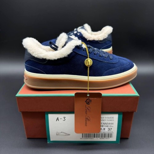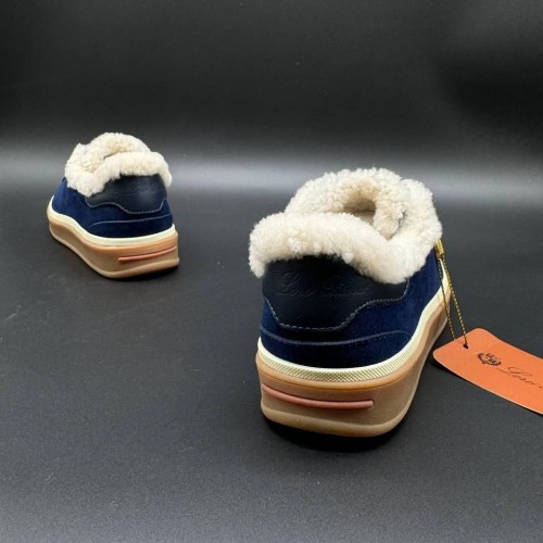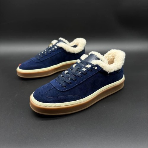 Синие зимние кеды Loro Piana из натуральной замши и натурального меха. Универсальный синий оттенок легко впишется в образы с джинсами или теплыми трикотажными брюками. Минималистичные кеды вне зависимости от трендов всегда остаются базой гардероба. В нашем интернет-магазине вы можете купить копии кед с доставкой по Москве и по всей России.
