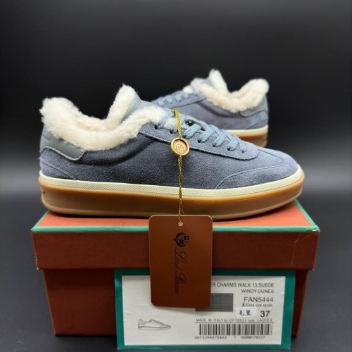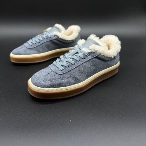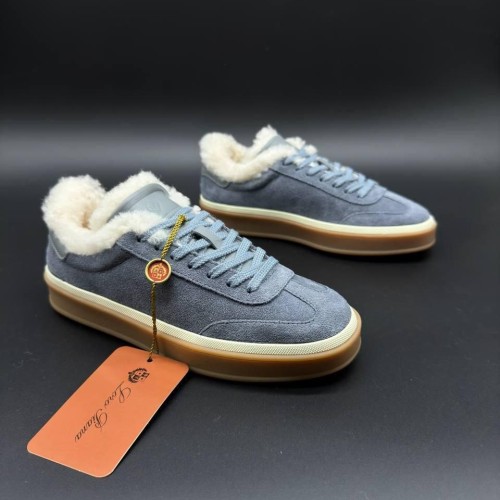 Зимние кеды Loro Piana голубого оттенка из натуральной замши и натурального меха. Внутри пара дополнена натуральным мехом, обеспечивающим надежную защиту от морозов. Профилированная анатомическая стелька и облегченная подошва гарантируют комфорт и легкую походку в течение насыщенного дня. В нашем интернет-магазине вы можете купить копии кед с доставкой по Москве и по всей России.
