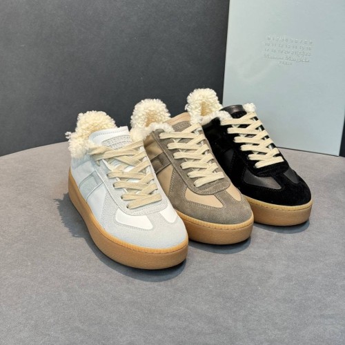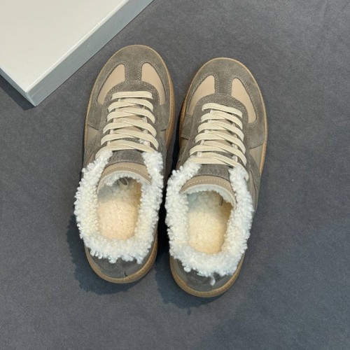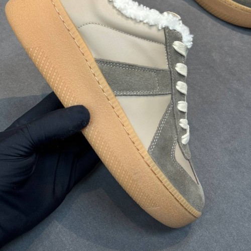 Бежевые кеды Maison Margiela из натуральной кожи, мягкой замши и меха. Зимние кеды из новой коллекции объединяют в себе выразительный дизайн, комфорт и лаконичность. Светлый оттенок поддерживает расслабленный стиль и сдержанность классического силуэта. В нашем интернет-магазине вы можете купить копии кед с доставкой по Москве и по всей России.