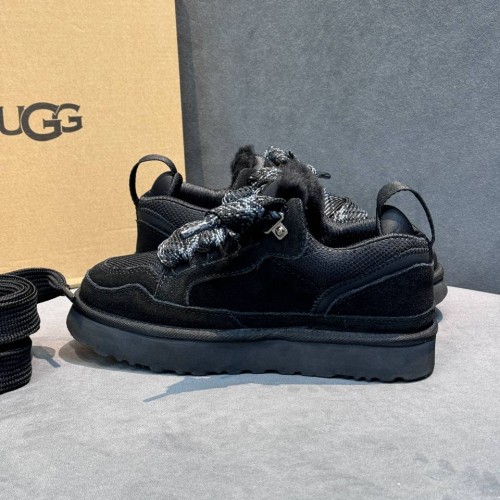 Черные зимние кеды UGG из натуральной мягкой замши и теплой овчины. Уютные зимние кеды не только позволят вам собирать расслабленные городские образы, но и надежно защитят в зимние холода. Модель дополнена удобной шнуровкой, меховыми стелькой и подкладкой, выходящей за края изделия, - все эти детали в совокупности делают ее максимально комфортной. В нашем интернет-магазине вы можете купить копии кед с доставкой по Москве и по всей России.