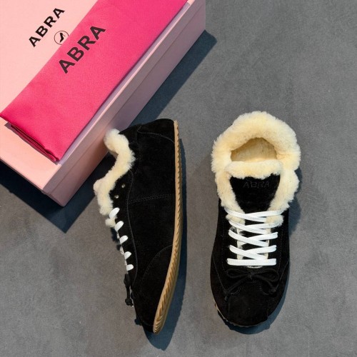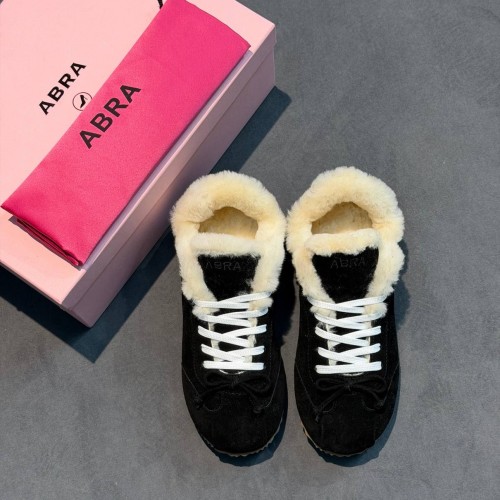 Черные зимние кроссовки Abra из натуральной замши и натурального меха. Внутри модель дополнена натуральным мягким мехом - материал надежно сохраняет тепло и обеспечивает комфорт. Продуманная форма, нескользящая подошва и лаконичный дизайн делают эту пару идеальным решением для тех, кто ценит комбинацию стиля и удобства. В нашем интернет-магазине вы можете купить копии кроссовок с доставкой по Москве и по всей России.