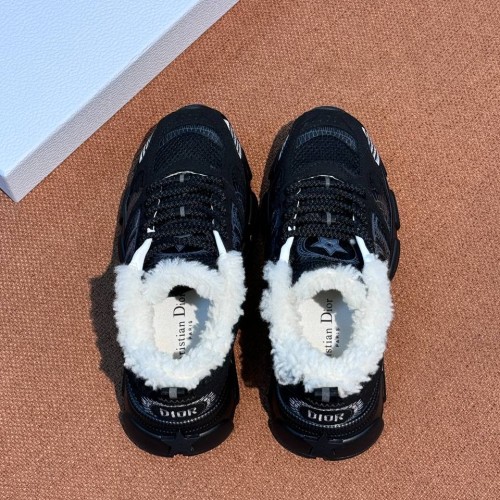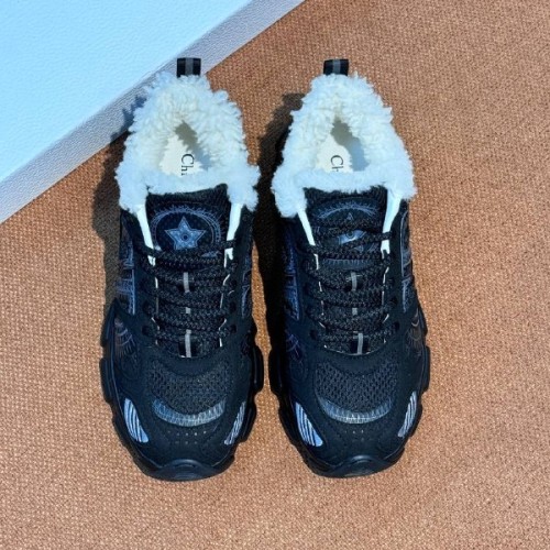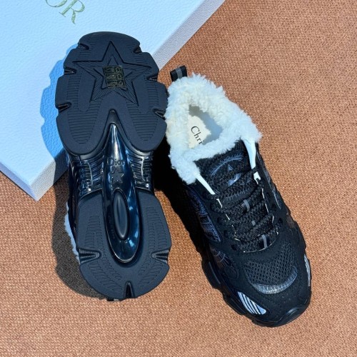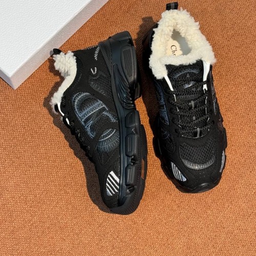 Женские черные зимние кроссовки Dior Chrono из натуральной кожи, натурального меха и сетки. Зимние кроссовки - стильное решение для холодного сезона, которое добавит непринужденности любому образу. Стелька и подкладка из натурального белоснежного меха обеспечат тепло и комфорт, а легкая подошва с рельефным рисунком будет устойчива к скольжению. В нашем интернет-магазине вы можете купить копии кроссовок с доставкой по Москве и по всей России.