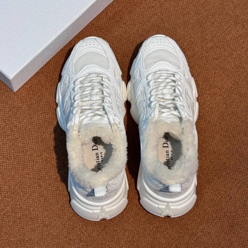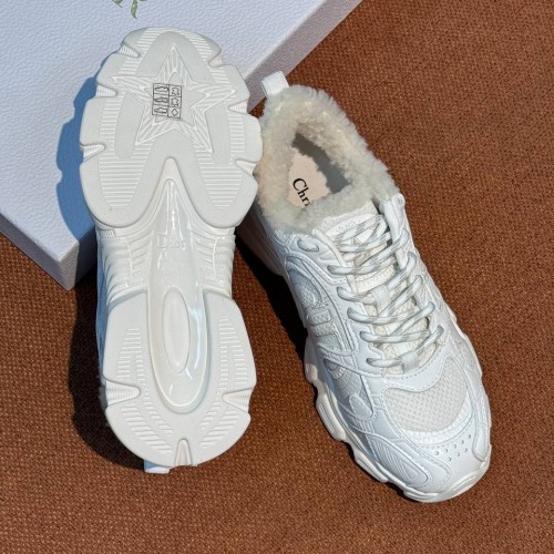 Женские белые зимние кроссовки Dior Chrono из натуральной кожи, натурального меха и сетки. Спортивный стиль - это комфорт и легкая походка даже в самые насыщенные дни. Внутри и для отделки голенища модель дополнена натуральным мягким мехом в тон - материал надежно сохраняет тепло и обеспечивает комфорт. В нашем интернет-магазине вы можете купить копии кроссовок с доставкой по Москве и по всей России.