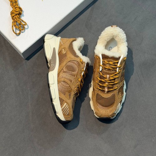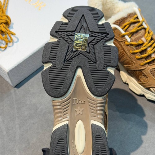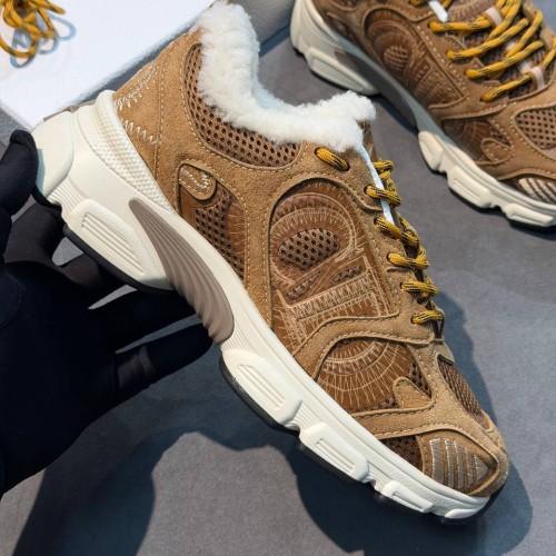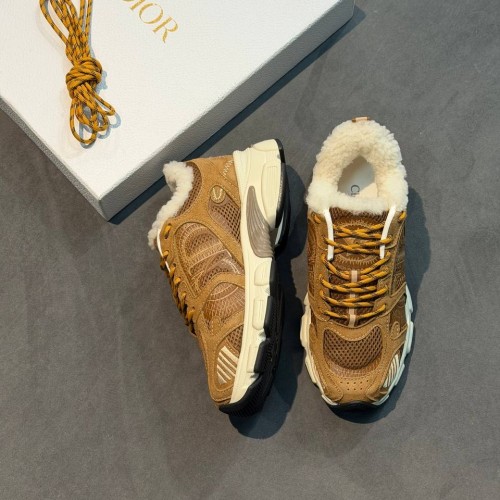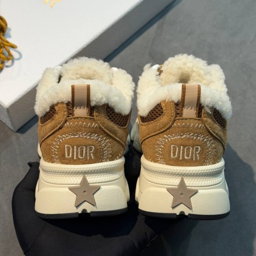 Коричневые зимние кроссовки Dior Chrono из натуральной замши, натурального меха и сетки. Стильная пара внесет в ваш зимний образ неповторимый спортивный оттенок. Внутри пара дополнена натуральным мехом, обеспечивающим надежную защиту от морозов. В нашем интернет-магазине вы можете купить копии кроссовок с доставкой по Москве и по всей России.
