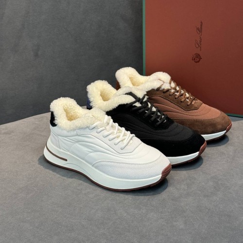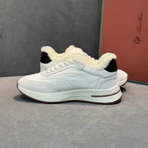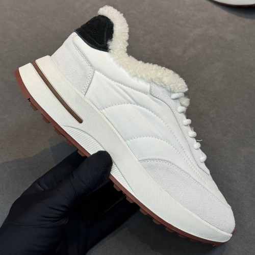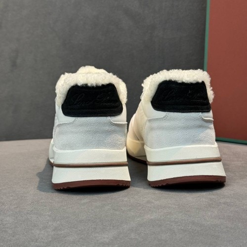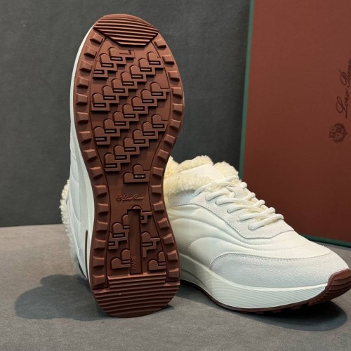 Белые женские кроссовки Loro Piana из текстиля со вставками из натуральной замши и овчины. Дизайнеры создали модель кроссовок, в которой точно выверен баланс между комфортом и модными тенденциями. Кроссовки выполнили со вставками из дышащего материала, который обеспечивает оптимальный внутренний климат, комфорт и усиливает циркуляцию воздуха. В нашем интернет-магазине вы можете купить копии кроссовок с доставкой по Москве и по всей России.