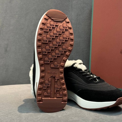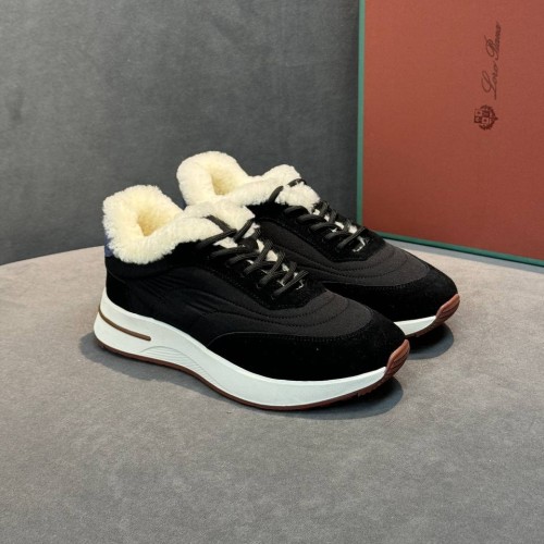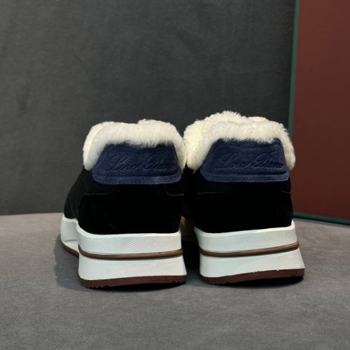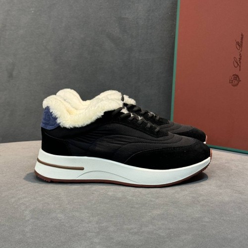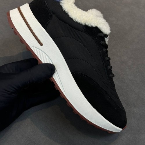 Черные женские кроссовки Loro Piana из текстиля со вставками из натуральной замши и овчины. Универсальное решение для городских зимних образов. Модель впишется как в повседневные сочетания, так и в стилизации для особенного случая, а подкладка и стелька из натурального меха помогут сохранить тепло в прохладную погоду. В нашем интернет-магазине вы можете купить копии кроссовок с доставкой по Москве и по всей России.
