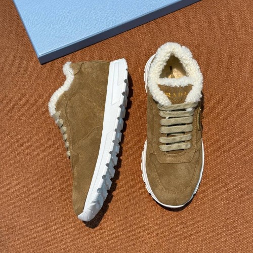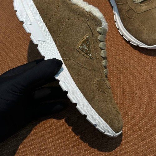 Коричневые женские кроссовки Prada из натуральной замши и меха. Уже не первый сезон образы с низкими кроссовками - в числе самых модных. В новой коллекции модель представлена в самом универсальном варианте, но даже в ее дизайне нашлось место экспериментам в деталях. В нашем интернет-магазине вы можете купить копии кроссовок с доставкой по Москве и по всей России.