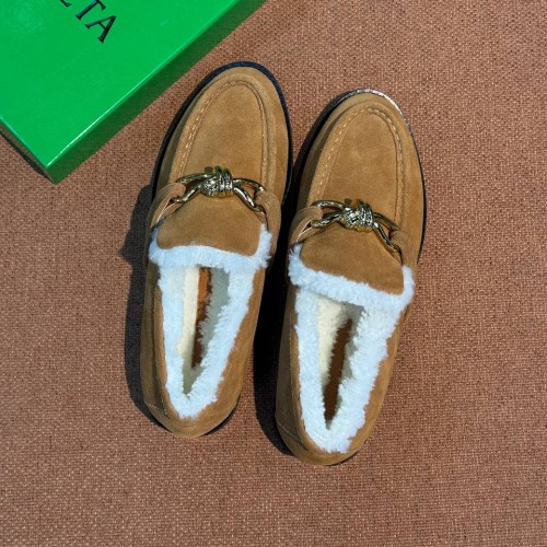 Женские лоферы Bottega Veneta оттенка кэмел из натуральной замши и натурального меха. Эти лоферы появились в новой коллекции, чтобы даже на прогулке или в офисе вы чувствовали себя как дома. Без каблука и с подкладкой из натурального меха - изделие повторяет силуэт комфортной домашней обуви. В нашем интернет-магазине вы можете купить копии лоферов с доставкой по Москве и по всей России.