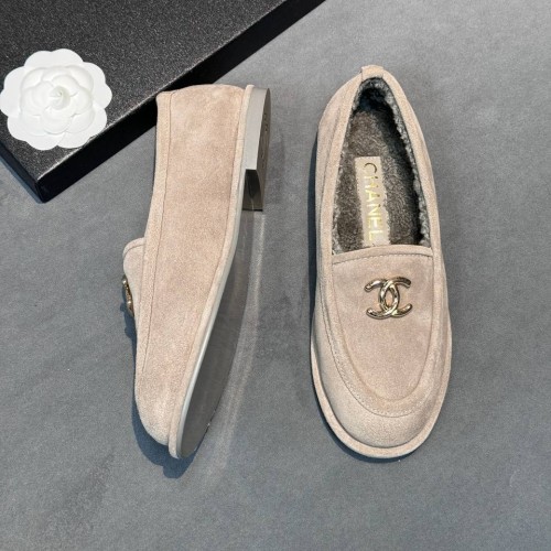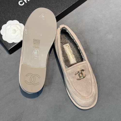 Бежевые женские лоферы Chanel из мягкой натуральной замши и натурального меха. Комфорт и легкая походка даже в самые насыщенные дни. Внутри модель дополнена натуральным мягким мехом - материал надежно сохраняет тепло и обеспечивает комфорт. Продуманная форма, нескользящая подошва и лаконичный дизайн делают эту пару идеальным решением для тех, кто ценит комбинацию стиля и удобства. В нашем интернет-магазине вы можете купить копии лоферов с доставкой по Москве и по всей России.