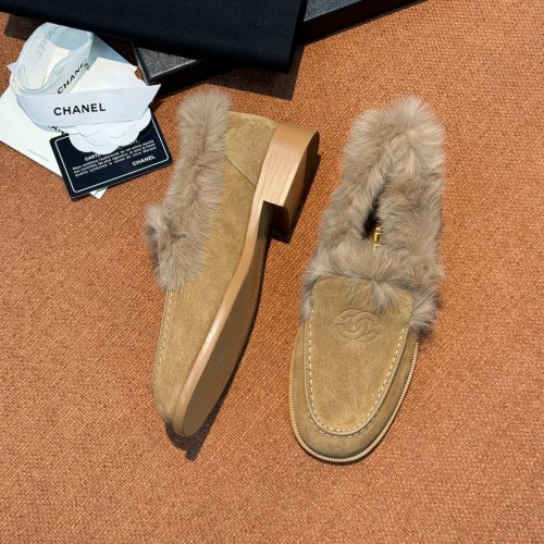 Бежевые женские лоферы Chanel из натуральной замши и натурального меха. Стильная модель дополнена натуральным мягким мехом - материал надежно сохраняет тепло и обеспечивает комфорт. Лаконичный дизайн делает эту пару идеальным решением для тех, кто ценит комбинацию стиля и удобства. В нашем интернет-магазине вы можете купить копии лоферов с доставкой по Москве и по всей России.