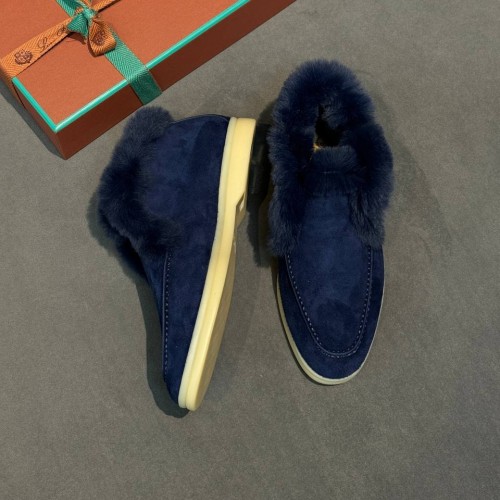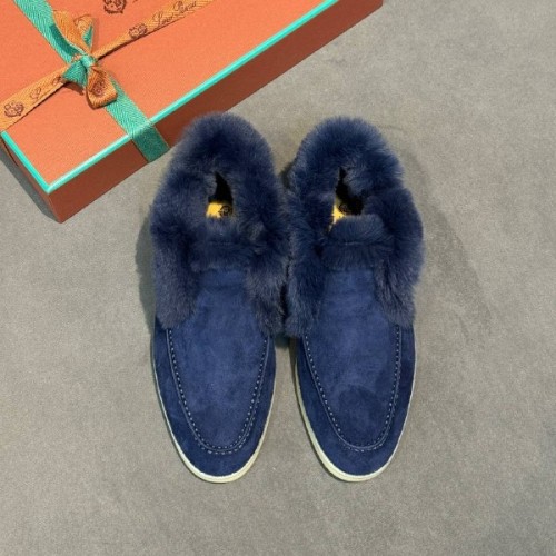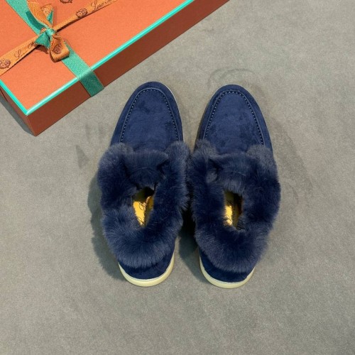 Зимние синие женские лоферы Loro Piana из натуральной замши и натурального меха. Минималистичный дизайн и функциональность - это про лоферы из новой коллекции, которые созданы для зимы в городе. Пара представлена без фурнитуры и лишних деталей в объемном силуэте. В нашем интернет-магазине вы можете купить копии лоферов с доставкой по Москве и по всей России.
