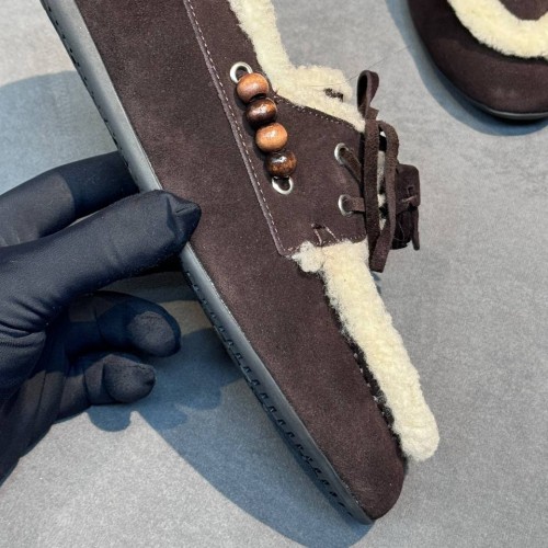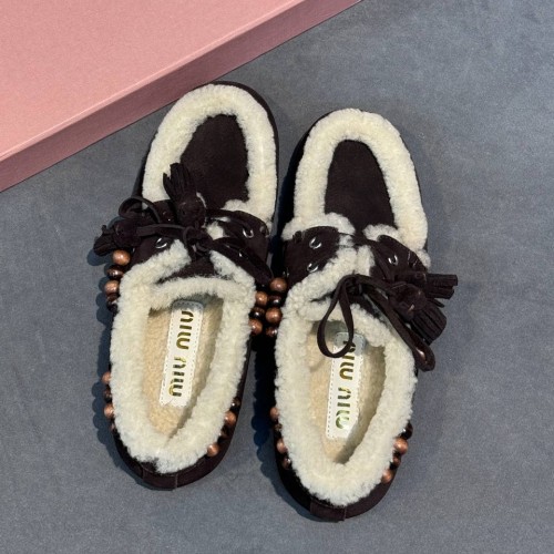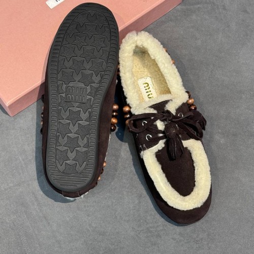 Коричневые женские лоферы Miu Miu из натуральной мягкой замши и натурального меха. Идеальная пара для элегантной повседневности. Лоферы дополнены теплым белым мехом. В нашем интернет-магазине вы можете купить копии лоферов с доставкой по Москве и по всей России.