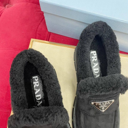 Черные зимние женские лоферы Prada из натуральной замши и меха. Лоферы, которые дополнят самые эффектные образы. За комфорт в этой модели отвечают удобная колодка, натуральный мех и округлая носочная часть анатомической формы. В нашем интернет-магазине вы можете купить копии лоферов с доставкой по Москве и по всей России.
