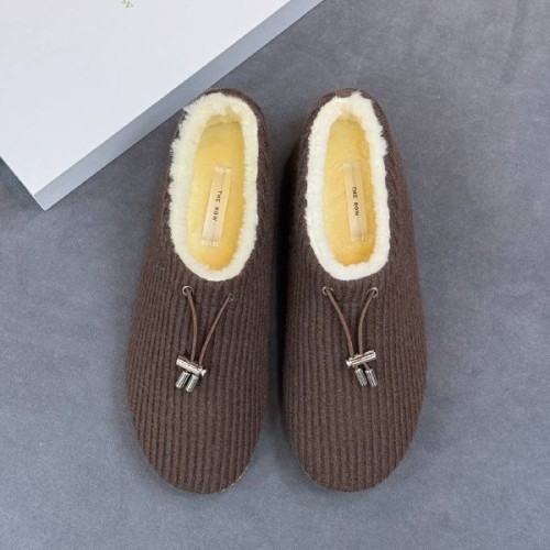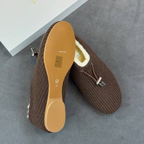 Коричневые зимние лоферы The Row из шерсти и натурального меха. Эффектная модель в современном стиле. Меховые подкладка и стелька обеспечивают комфорт и сохраняют тепло в холодное время года. Легкая подошва обеспечивает устойчивость и удобство во время ходьбы. В нашем интернет-магазине вы можете купить копии лоферов с доставкой по Москве и по всей России.