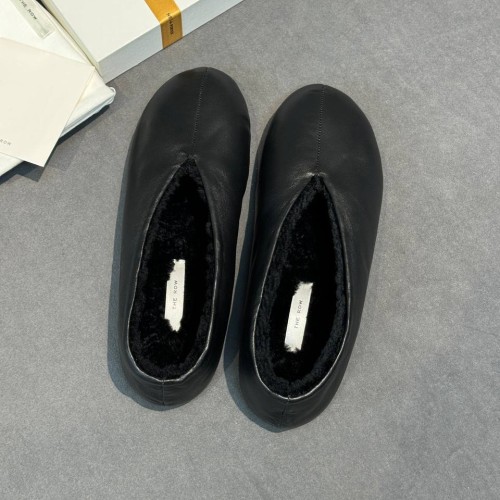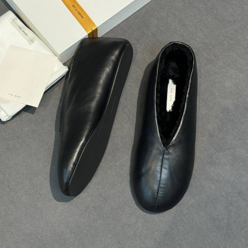 Черные зимние лоферы The Row из натуральной кожи и овчины. Компромисс между комфортом и стилем в холодную погоду найден, и это зимние лорферы из новой коллекции. Натуральный мех гарантирует ногам полный комфорт и тепло. В нашем интернет-магазине вы можете купить копии лоферов с доставкой по Москве и по всей России.