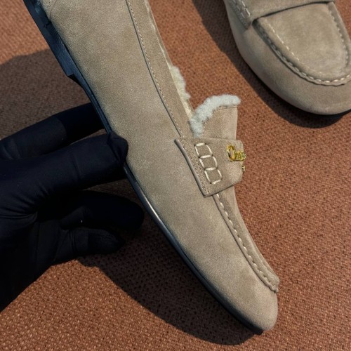 Зимние бежевые мокасины Christian Dior из натуральной замши и натурального меха. Мокасины, которые прямо сейчас притягивают больше всего внимания - минималистичные, закрытые и мягкие. Модель дополнена круглой носочной частью и натуральным мехом. В нашем интернет-магазине вы можете купить копии мокасин с доставкой по Москве и по всей России.