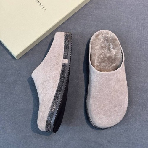 Бежевые женские мюли Brunello Cucinelli из натуральной замши и натурального меха. Для тех, кто верит, что зимняя обувь может быть теплой, уютной и одновременно стильной, - мюли из замши. Мягкая пара в классическом силуэте выполнена без лишних деталей с подкладкой и стелькой из натурального меха. В нашем интернет-магазине вы можете купить копии мюли с доставкой по Москве и по всей России.